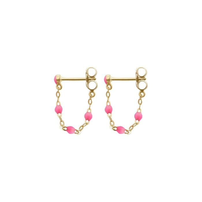Boucles d'oreilles Gigi Clozeau Classique en or jaune et résine rose fluo